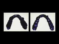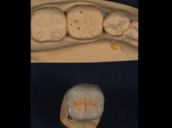 歯のかみ合わせは、髪の毛1本でも感じることが出来る繊細なものです。 適合やかみ合わせの調整が甘いとせっかくの治療が台無しになるだけでなく、 新たな問題を引き起こす可能性もあります。 精密歯科診療と腕の良い技工士さんとの連携により作られたセラミック冠は、 適合が良く、細かなかみ合わせの調整が可能です。 写真の状態は技工士さんが設定したかみ合わせの位置と、 お口の中に入れての調整の位置が合っているか分かるように...